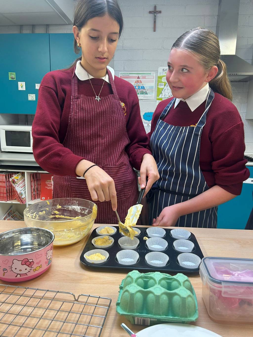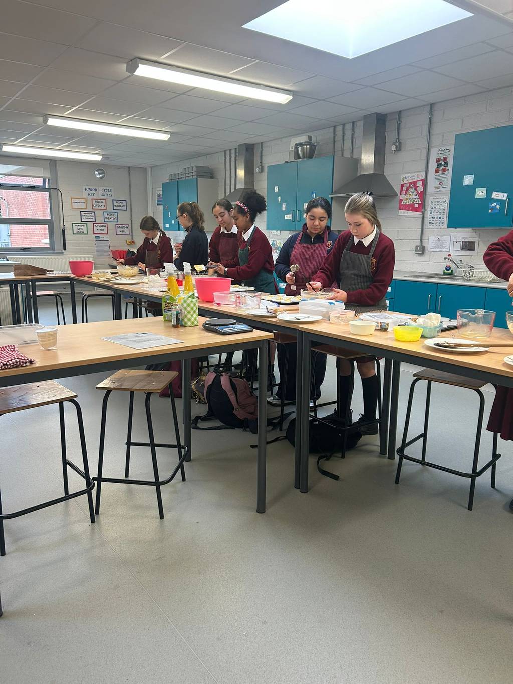 1st years were busy baking Fairy Cakes in Home Ec today – they displayed great safety and hygiene skills which we have been focusing on in class. Well done girls!